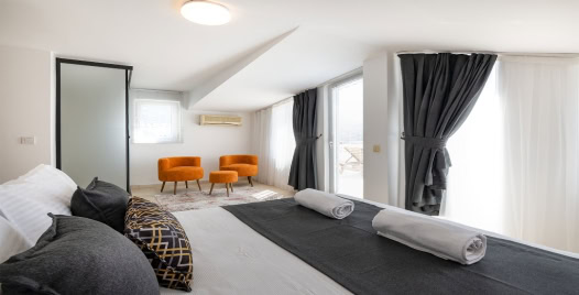 3.Yatak odası: 1 adet çift kişilik yatak, elbise dolabı, saç kurutma makinası, klima, banyo ve tuvalet vardır.Her yatak odalarında temiz nevresim takımları ve havlu takımları yer almaktadır.