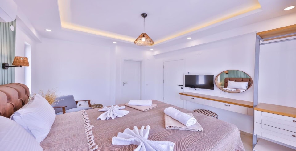 1. Yatak Odası : Çift kişilik bir adet yatak, elbise dolabı, komodin, klima, banyo ve tuvalet bulunmaktadır.