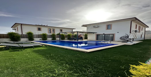 Havuz ve Bahçe : 1.55 santimetre sığ özel yüzme havuzunun içinde şezlong bulunan bahçemizde ekstra şezlonglar, şemsiye, yemek masası, salıncak ve barbekü alanı bulunmaktadır.