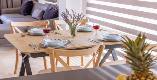 Mutfak : Modern Amerika mutfağımızda buzdolabı, bulaşık makinesi, ocak, fırın, mikrodalga fırın, yemek masası, yemek takımı ve yemek pişirme araç gereçleri yer almaktadır.