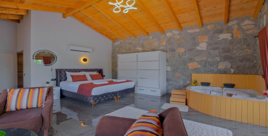 Fethiye Esenköy’de yer alan Villa Zehra Sultan, 3 yatak odasıyla 6 kişilik konaklama imkânı sunar. Jakuzisi ve saunasıyla rahatlatıcı anlar sunarken, korunaklı yapısı muhafazakar aileler için konforlu bir ortam sağlar. Doğayla iç içe konumu ve sakin atmosferiyle kalabalıktan uzak, huzurlu bir tatil isteyenler için ideal bir tercih.