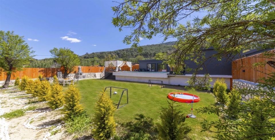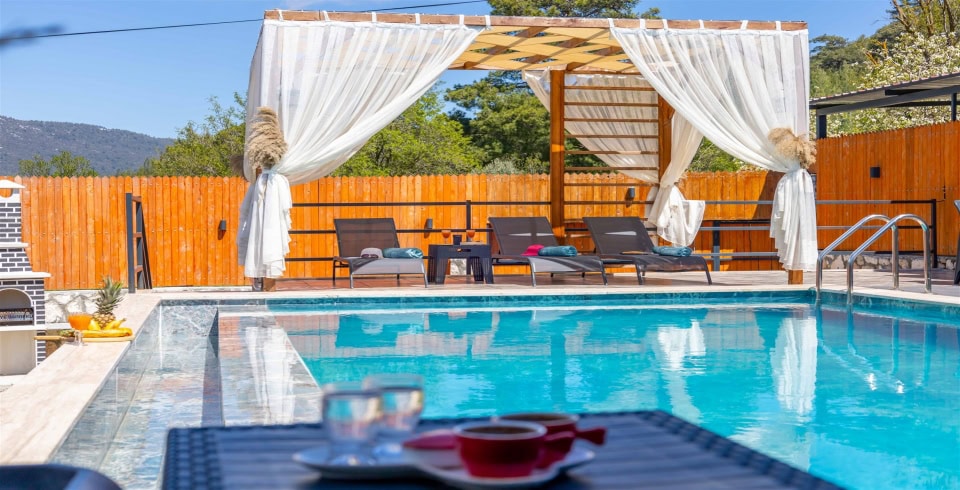 Havuz ve Bahçe : Özel yüzme havuzu, havuz başında şezlong, güneşlenme şemsiyesi, barbekü, yemek masası ve sandalyeleri bulunmaktadır. Havuz ve bahçe bakımı görevli tarafından günlük olarak yapılmaktadır.