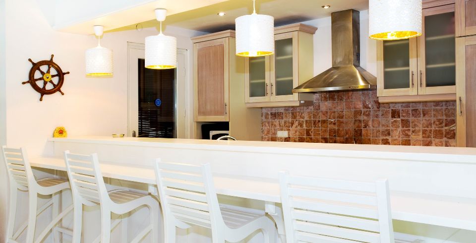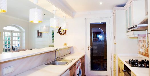 Mutfak : Amerikan mutfakta buz dolabı, bulaşık makinesi, fırın, mikrodalga fırın, 4’lü ocak (ankastre), elektrikli su ısıtıcı, 8 kişilik yemek takımları, çatal ve bıçak takımları, tencere ve tava takımları, bardaklar bulunmaktadır.