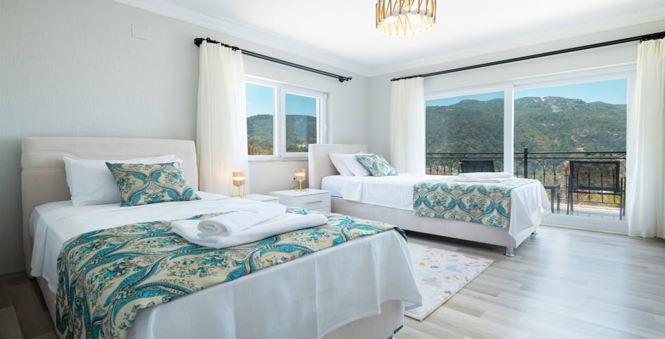 2. Yatak Odası: 2 adet tek kişilik, klima, TV komodin, elbise dolabı, makyaj masası banyo ve tuvalet bulunmaktadır.