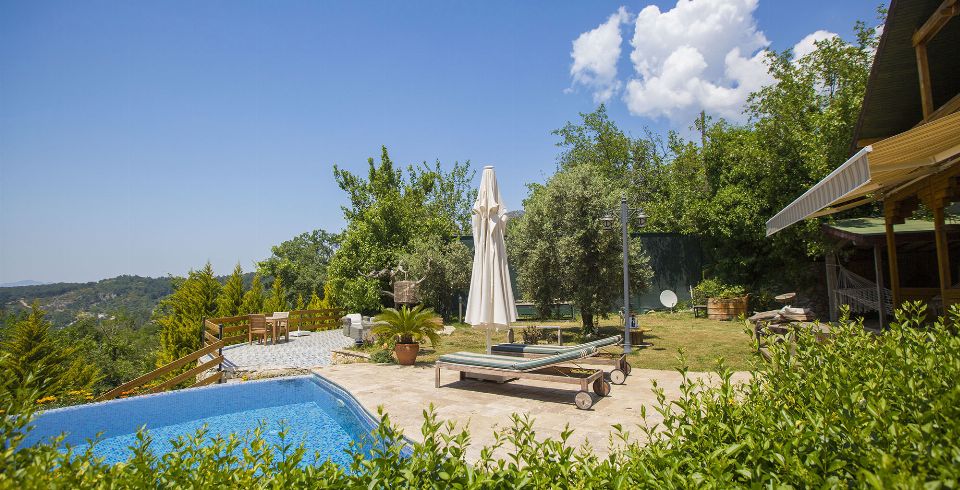 Bahçe : Villamızın bahçesinde özel yüzme havuzu, güneşlenmeniz için 4 adet şezlong, 4 kişilik masa, mangal keyfiniz için barbekü, güneş şemsiyesi bulunmaktadır.
