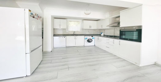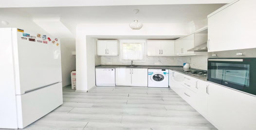 Mutfak: Tam donanımlı modern Amerikan mutfak içerisinde buzdolabı, bulaşık makinesi, fırın, ocak, elektrikli su ısıtıcı, yemek masası, yemek takımları, çatal ve bıçak takımları, tencere ve tava takımları ve bardaklar bulunmaktadır.