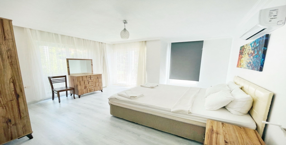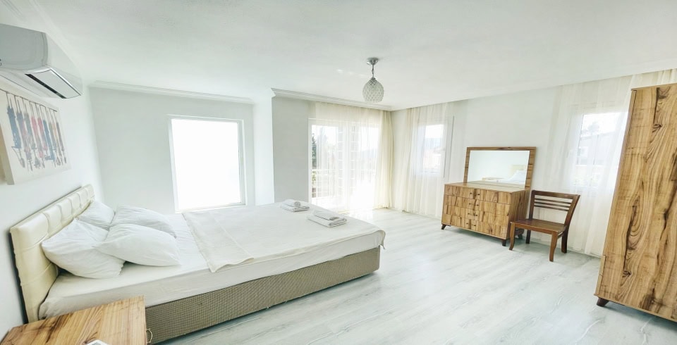 2.Yatak Odası: 1 adet çift kişilik yatak, klima, makyaj masası, komodin, elbise dolabı, banyo ve tuvalet bulunmaktadır.