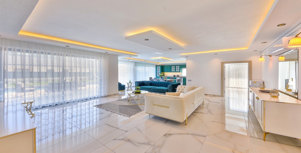 Salon : Oturma grubu, uydu alıcı, LCD TV, Klima, Wi-fi vb. ekipmanlar ve havuz bahçe katına çıkış bulunmaktadır.