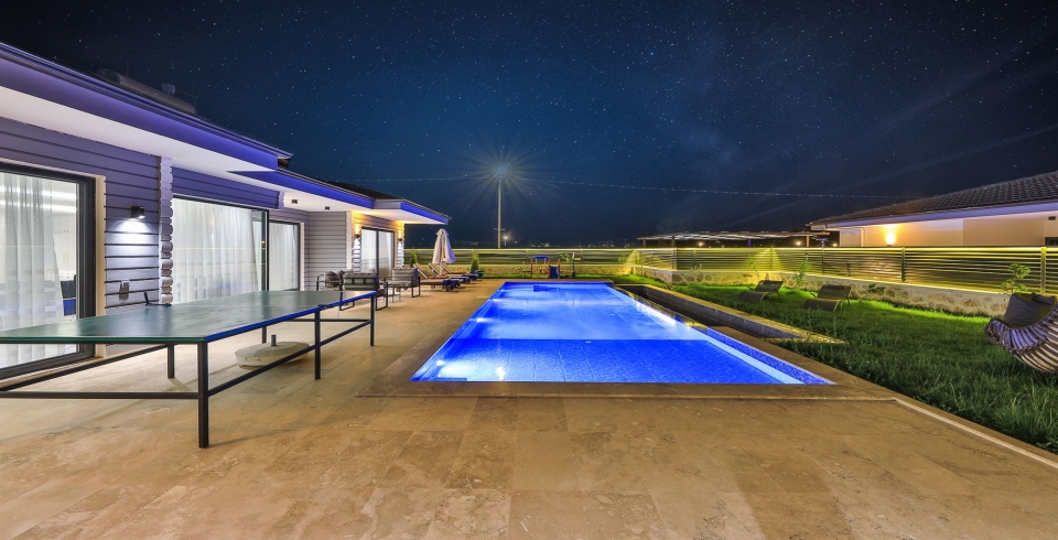 Havuz ve Bahçe: Havuz ve bahçesi korunaklı olup dışarıdan gözükmemektedir. Özel yüzme havuzu, şezlong, şemsiye, salıncak, çocuk oyun alanı, masa tenisi, yemek masası ve barbekü bulunmaktadır.