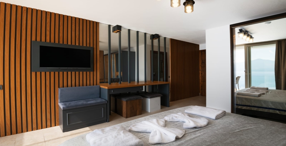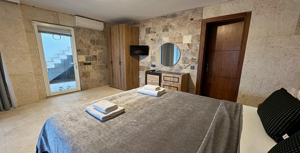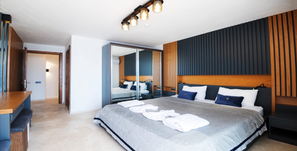 4. Yatak Odası : 2 adet tek kişilik yatak, komodin, gardırop, ebeveyn banyosu, klima ve televizyon bulunmaktadır.