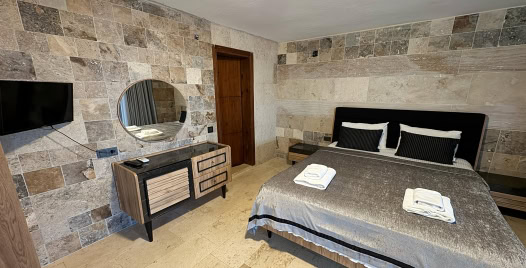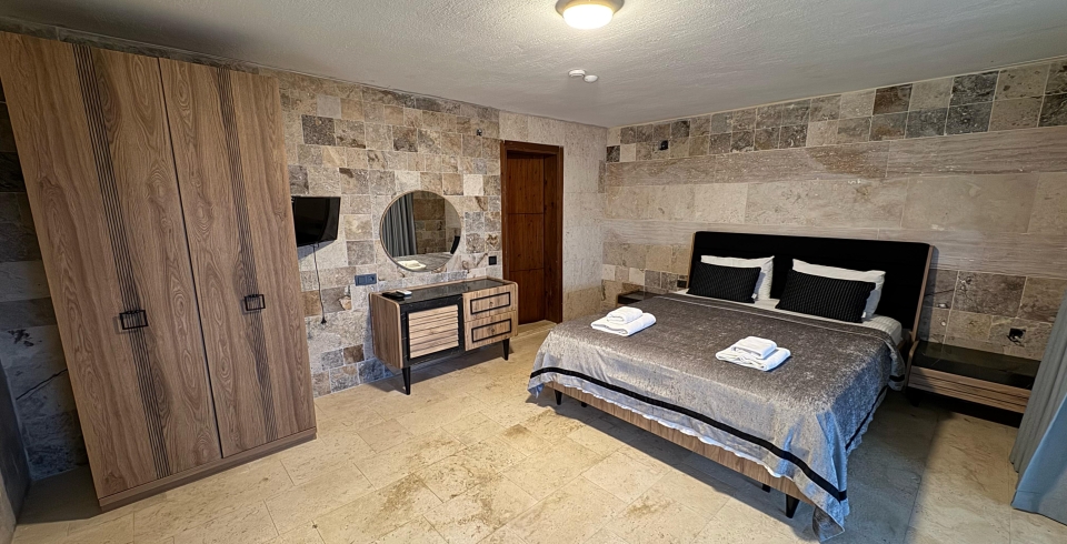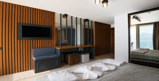 1. Yatak Odası : 1 adet çift kişilik yatak, komodin, gardırop ebeveyn banyosu, klima, televizyon, balkon bulunmaktadır.