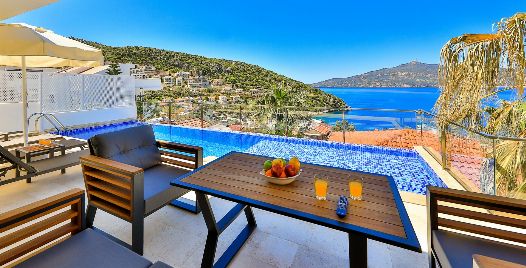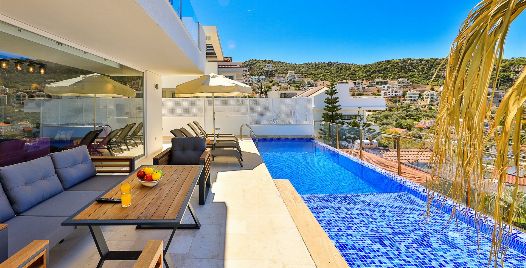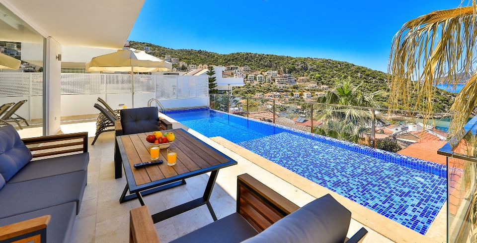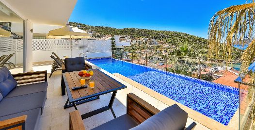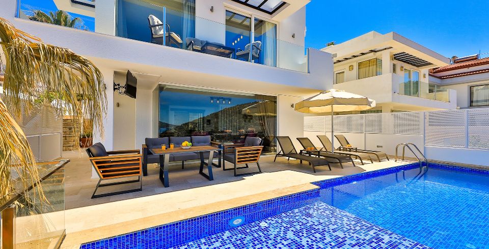 Villa Zya Kalkan Kışla bölgesinde yer almakta olan villamız 8 kişilik kapasiteye sahiptir. Geniş aileler ve arkadaş grupları için ideal olarak tasarlanmıştır. 4 yatak odası bulunan villamızın her odasında ebeveyn banyosu bulunmaktadır. Denize yürüme mesafesinde bulunan lüks villamız en çok tercih edilen seçeneklerimizden bir tanesidir.