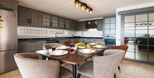 Mutfak : Mutfak bölümümüzde, buzdolabı, bulaşık makinesi, çamaşır makinesi, fırın, çatal & bıçak takımı, yemek takımı, kettle vb. mutfak ekipmanları bulunmaktadır.